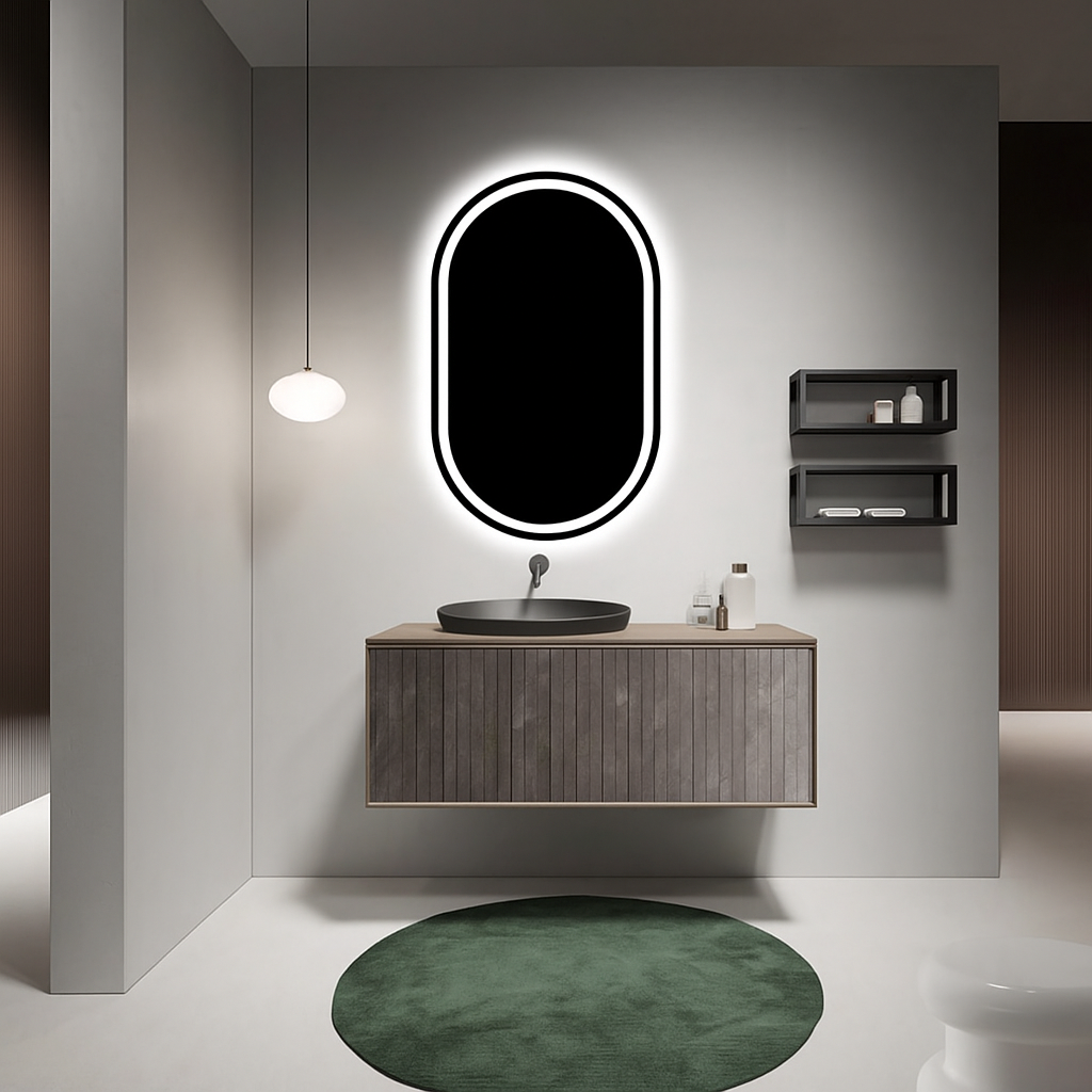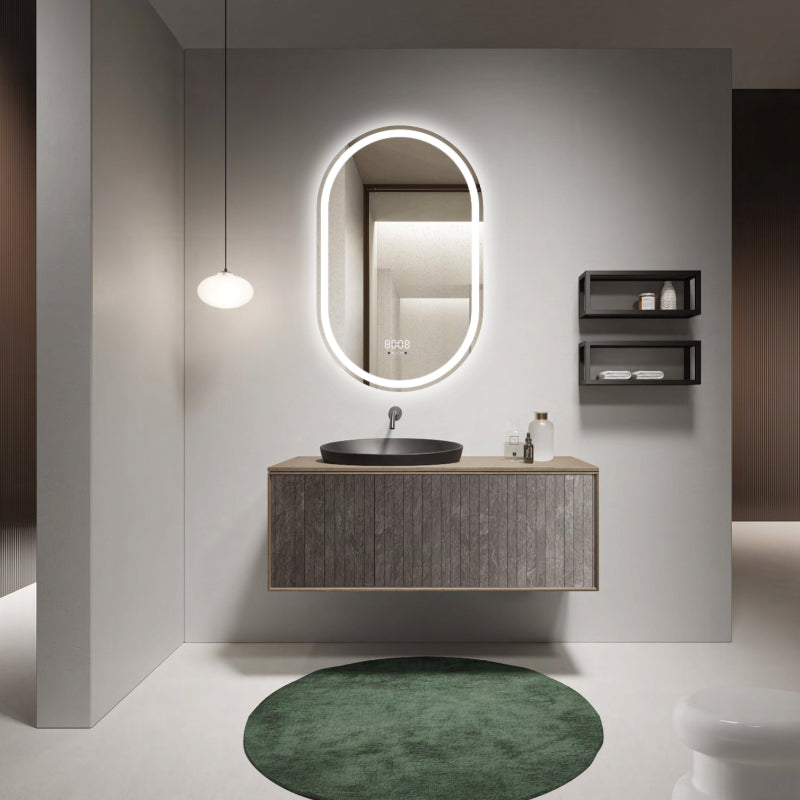Transformă baia într-un spa modern și funcțional cu oglinda LED ovala premium de 50×80 cm, creată pentru confort, estetică și tehnologie inteligentă. Oglinda este fabricată din sticlă argintie de 5 mm, fără cupru (tehnologie anti-oxidare), cu iluminare dublă (față + margine/spate) și senzori de miscare integrați pentru control total al funcțiilor fara a atinge oglinda.