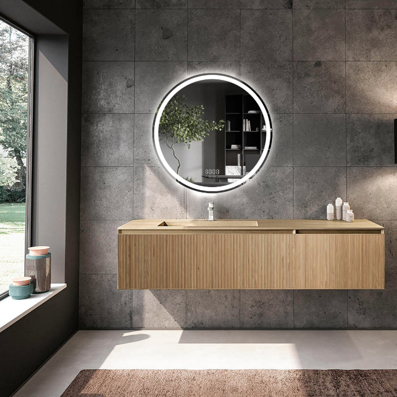 Transformă baia într-un spa modern și funcțional cu oglinda LED rotundă premium de 60×60 cm, creată pentru confort, estetică și tehnologie inteligentă. Oglinda este fabricată din sticlă argintie de 5 mm, fără cupru (tehnologie anti-oxidare), cu iluminare dublă (față + margine/spate) și senzori de miscare integrați pentru control total al funcțiilor fara a atinge oglinda.