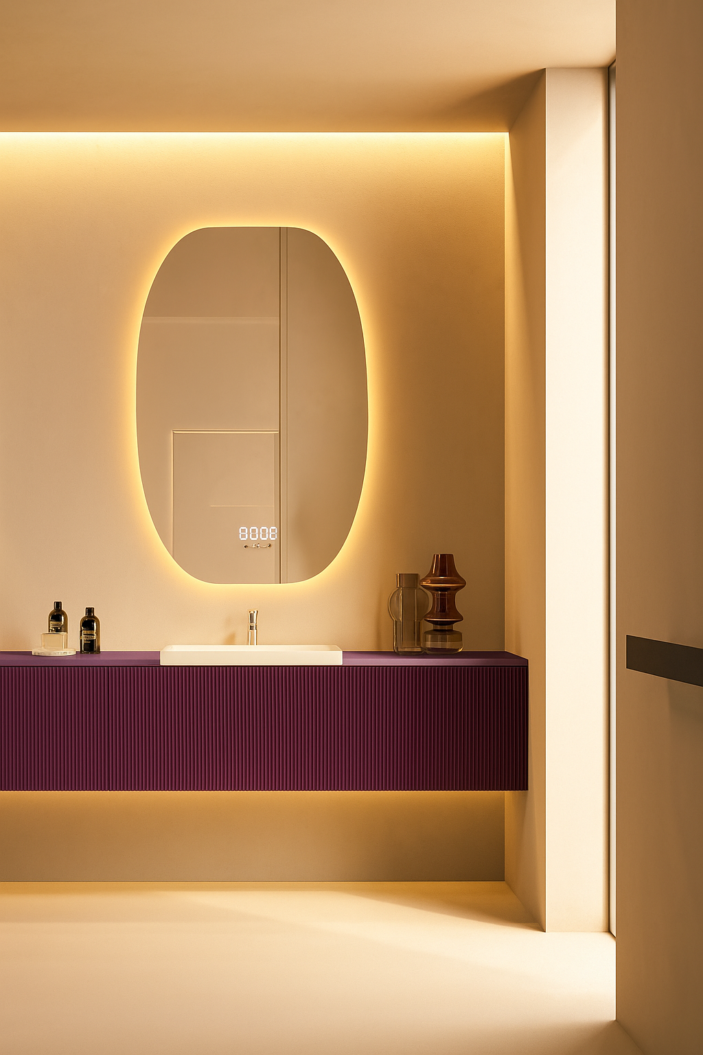 Transformă baia într-un spa modern și funcțional cu oglinda LED ovala premium de 60×80 cm, creată pentru...