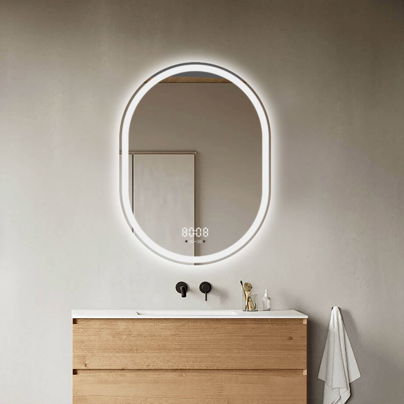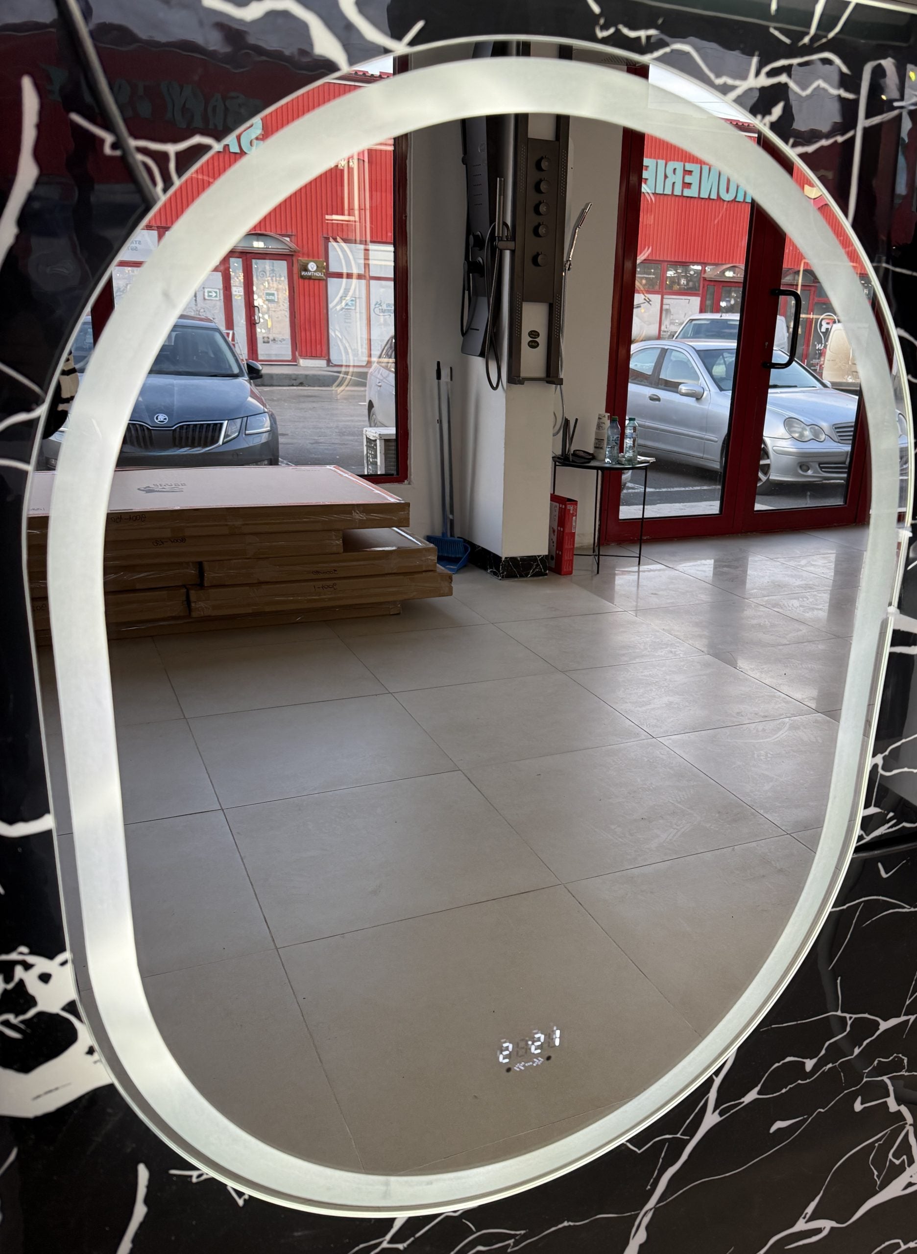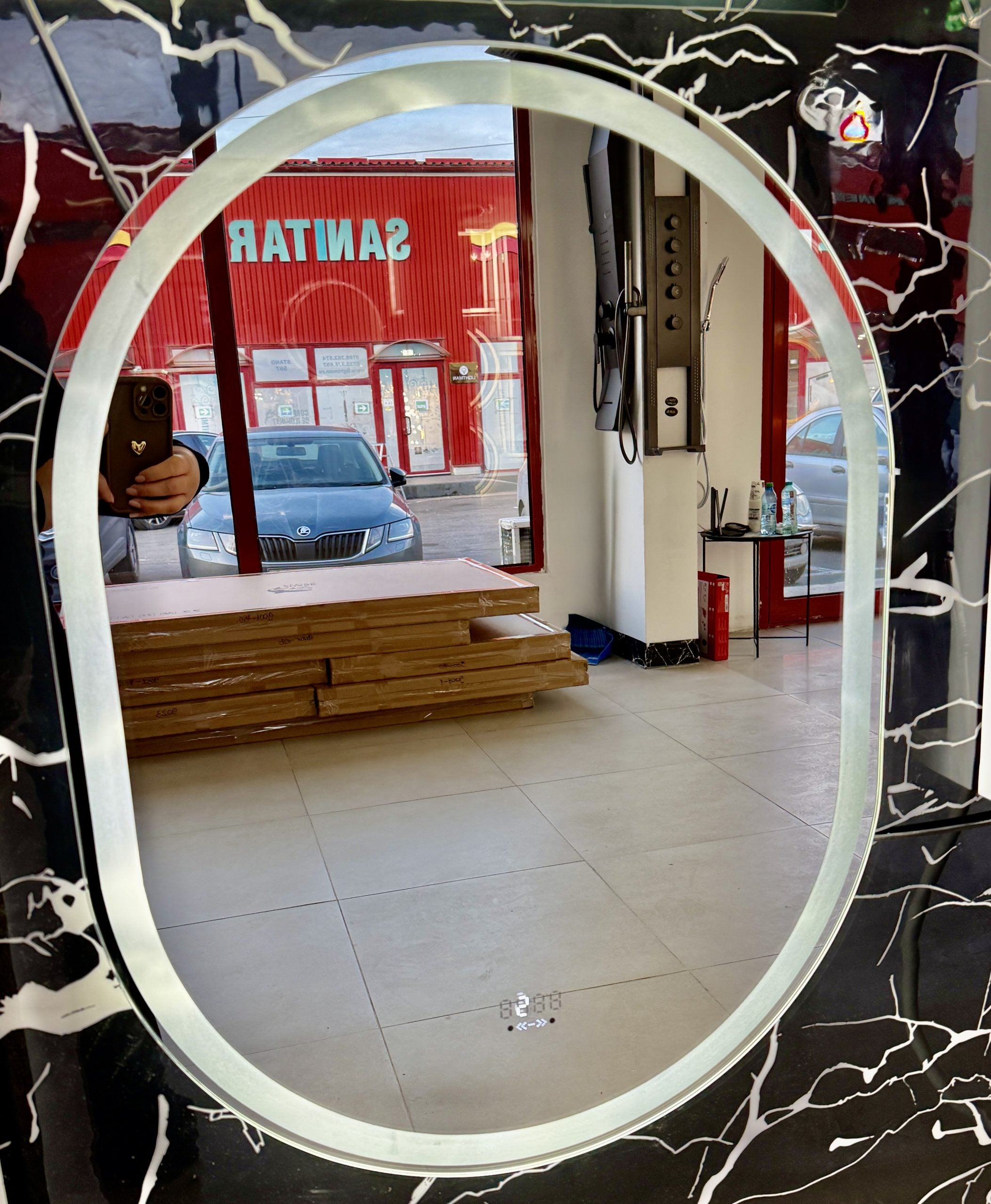 Transformă baia într-un spa modern și funcțional cu oglinda LED ovala premium de 60×80 cm, creată pentru confort, estetică și tehnologie inteligentă. Oglinda este fabricată din sticlă argintie de 5 mm, fără cupru (tehnologie anti-oxidare), cu iluminare dublă (față + margine/spate) și senzori de miscare integrați pentru control total al funcțiilor fara a atinge oglinda.