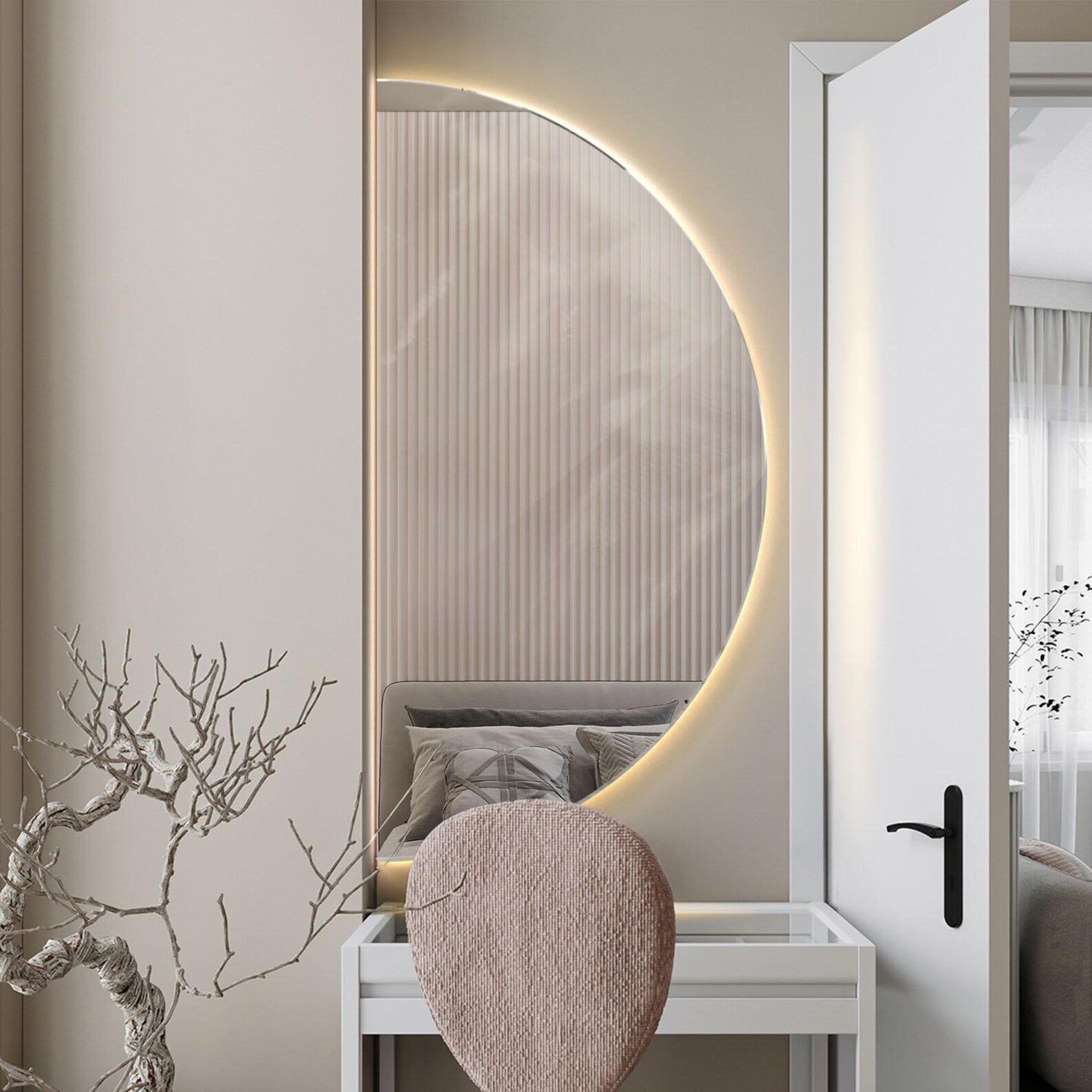 Transformă-ți baia într-un spațiu elegant și inteligent cu oglinda LED Premium Half Moon, un model modern ce combină funcționalitatea avansată cu un design spectaculos tip „jumătate de lună”.