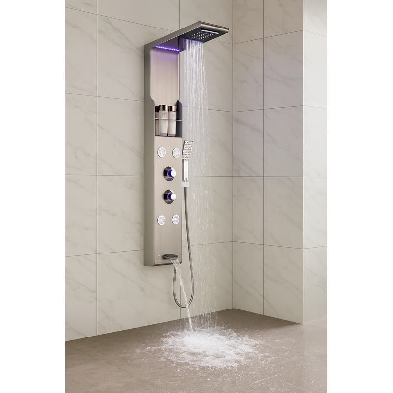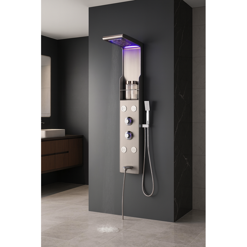 Transformă-ți baia într-un spațiu de relaxare premium cu Panelul de Duș! Conceput pentru o experiență unică de wellness, acest panel combină efectul de ploaie, cascade și masaj cu jeturi de apă pentru o senzație de revigorare absolută.